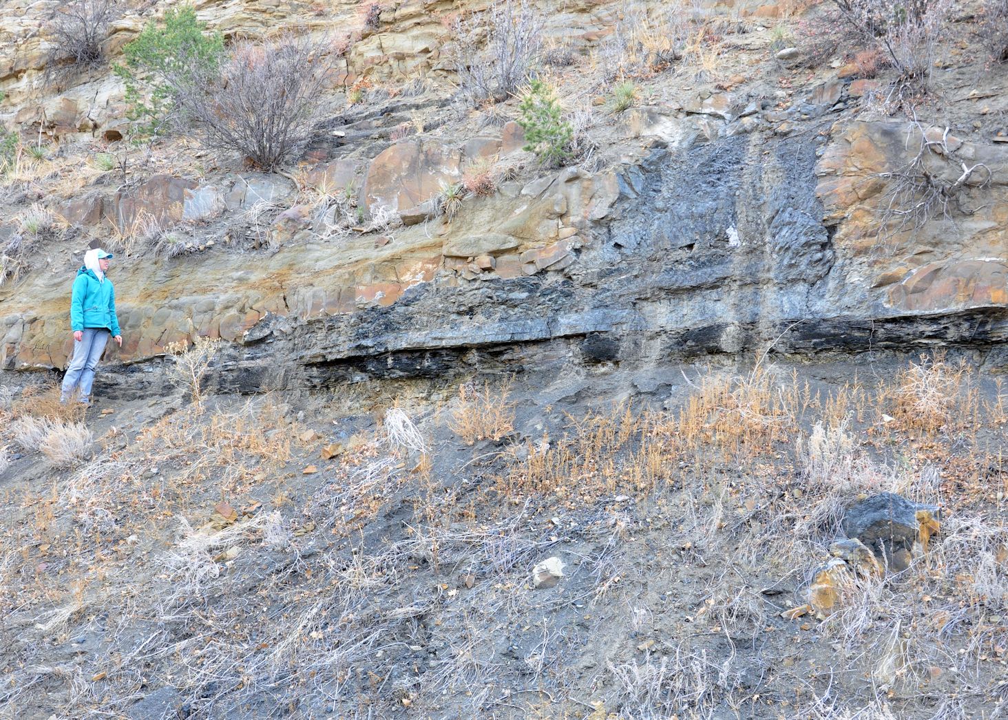 Intrusive vent filled with altered coal.